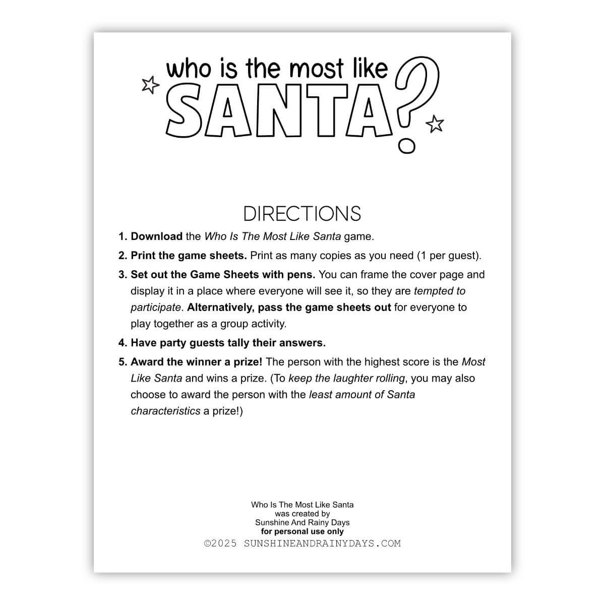 The Who Is Most Like Santa Christmas Game Printable is for personal use only.